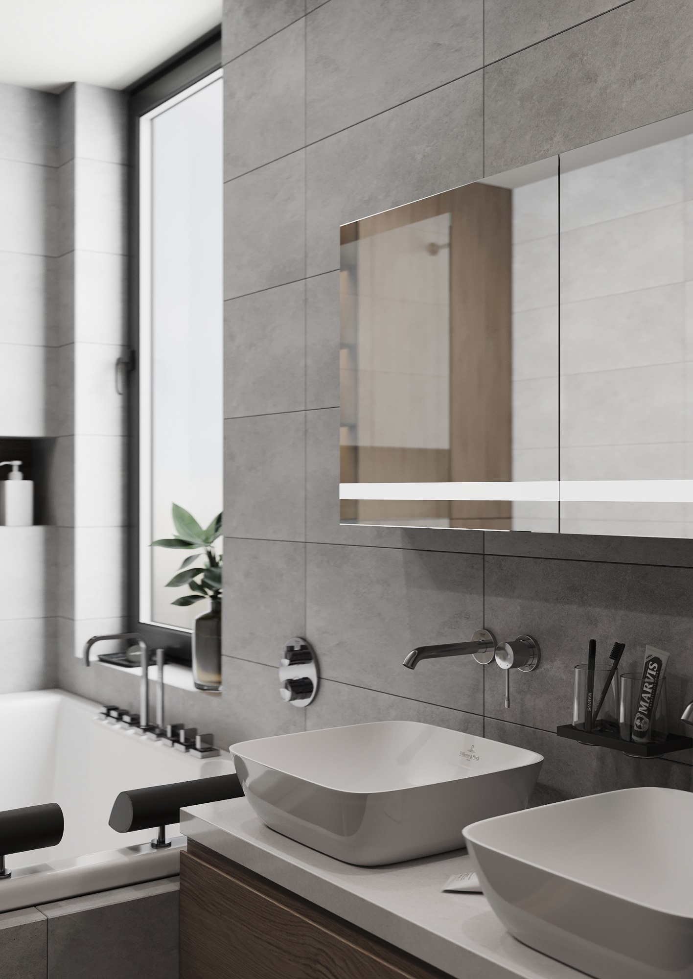 Система вентиляции: приточно-вытяжная установка с канальной разводкой воздуховодов. Система кондиционирования: мультисплит система. Отопление: конвекторное и радиаторное отопление, теплый пол. Водопровод и канализация: применена коллекторная разводка водоснабжения к потребителям с циркуляционными контурами. Управление настройками микроклимата осуществляется при помощи мобильного приложения.