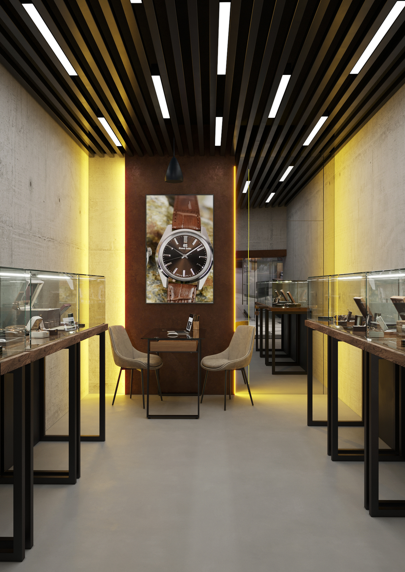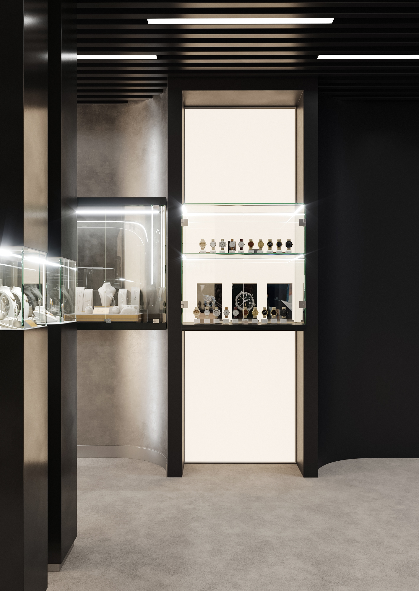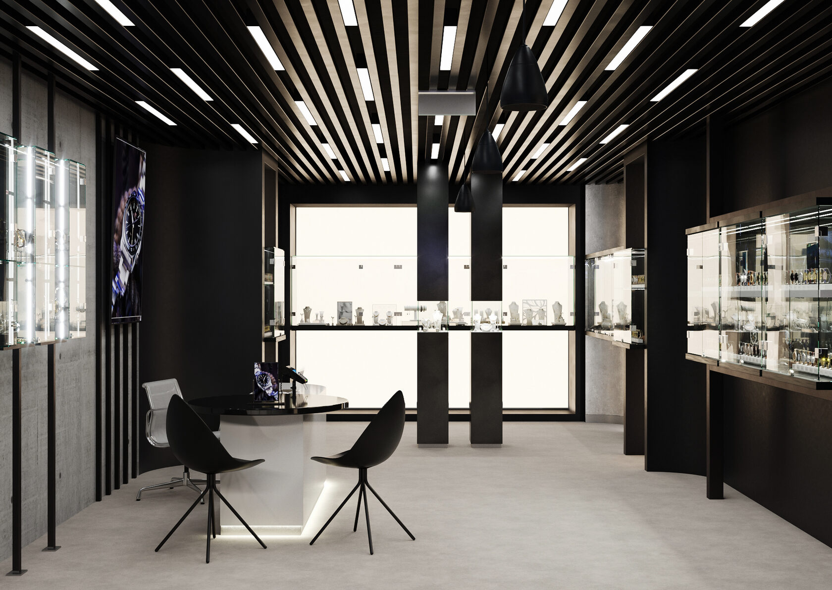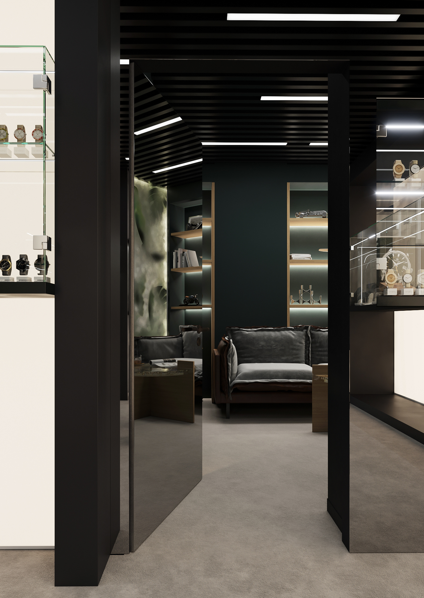 Главная задача при формировании концепции дизайна была разделить одно торговое помещение на три зоны (pre-owned , основная и премиум). Нам удалось сделать это путем концепции loft-underground и хайтек-минимализм. Контраст, созданный путем нескольких материалов, помог достичь желаемого эффекта.