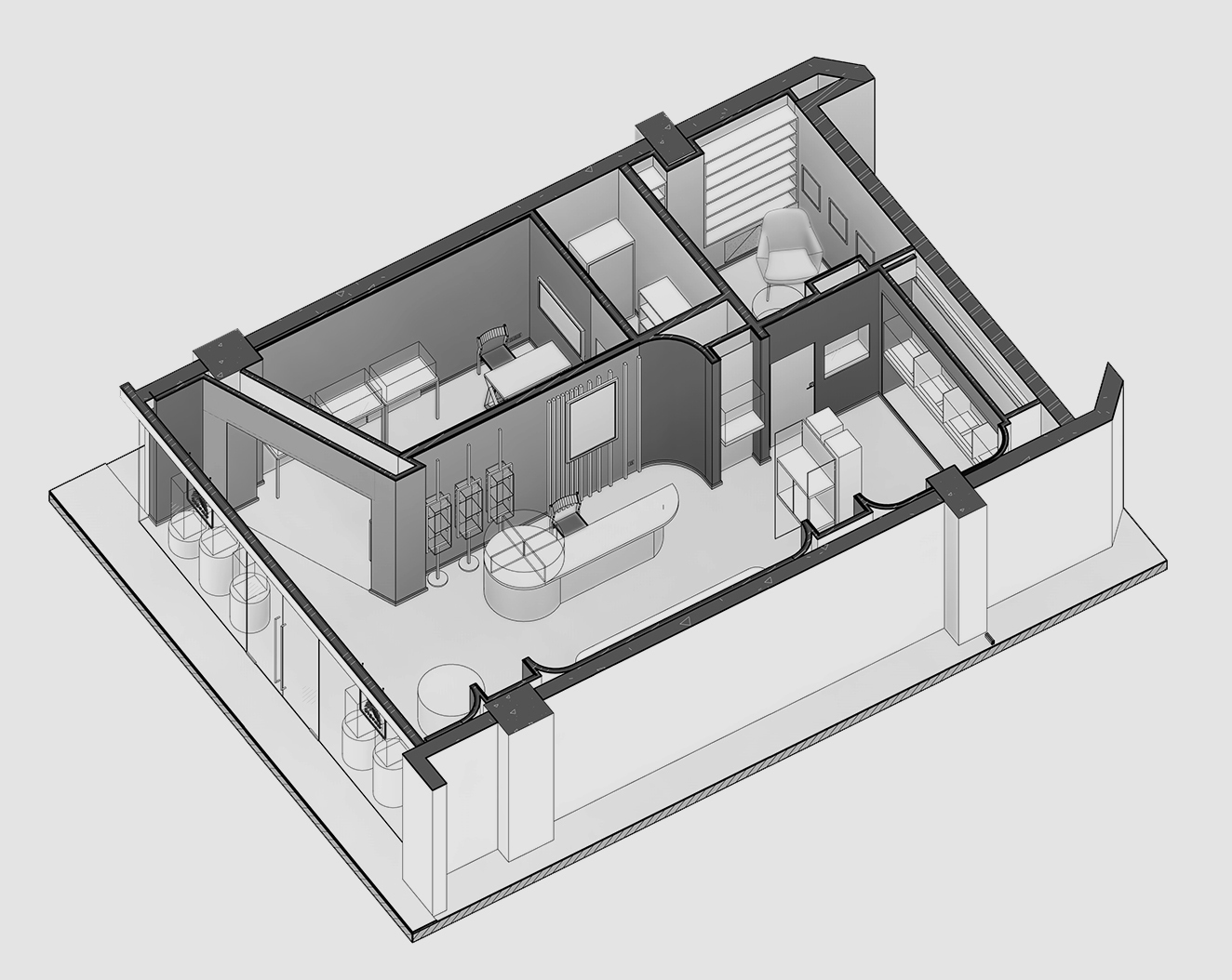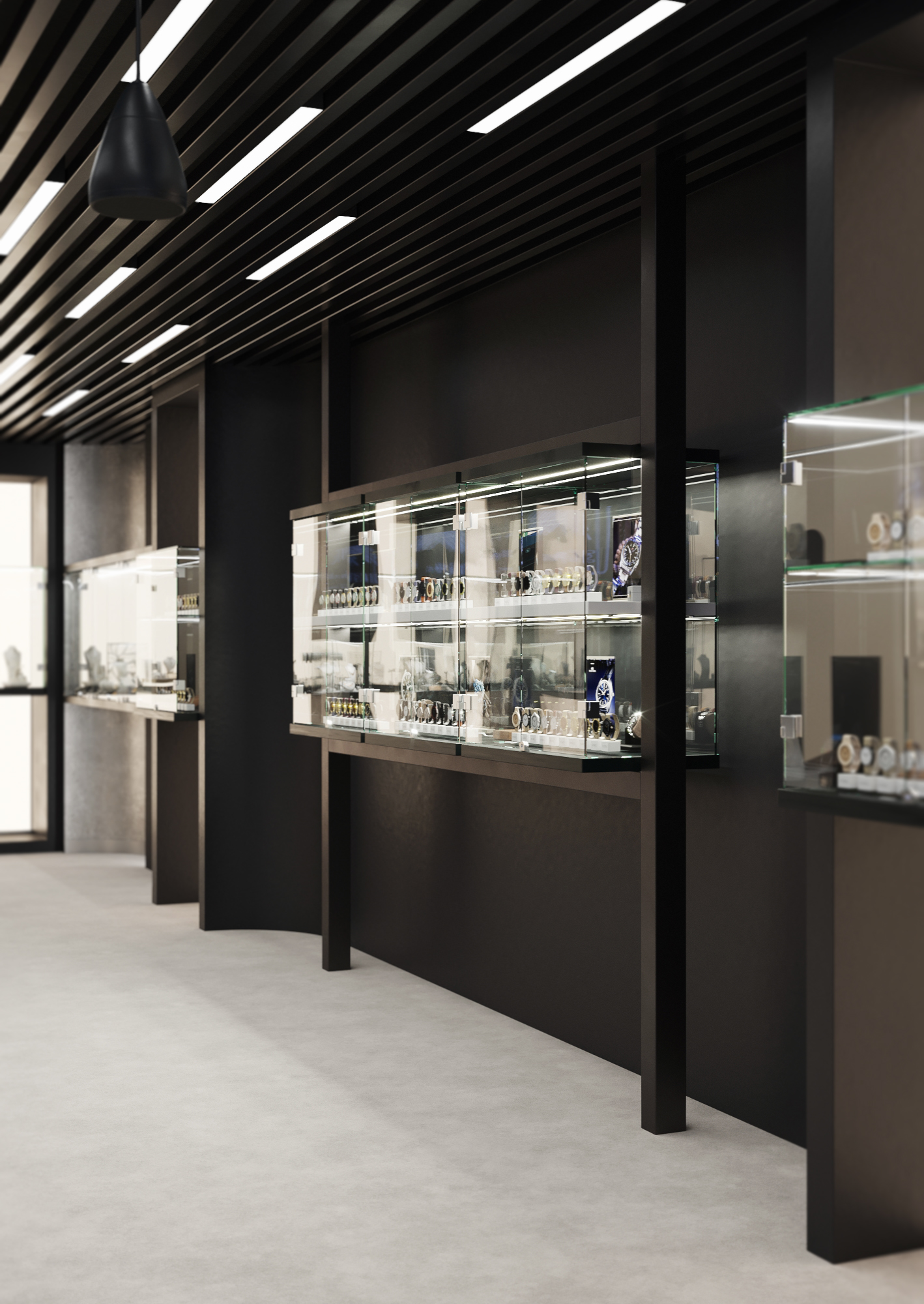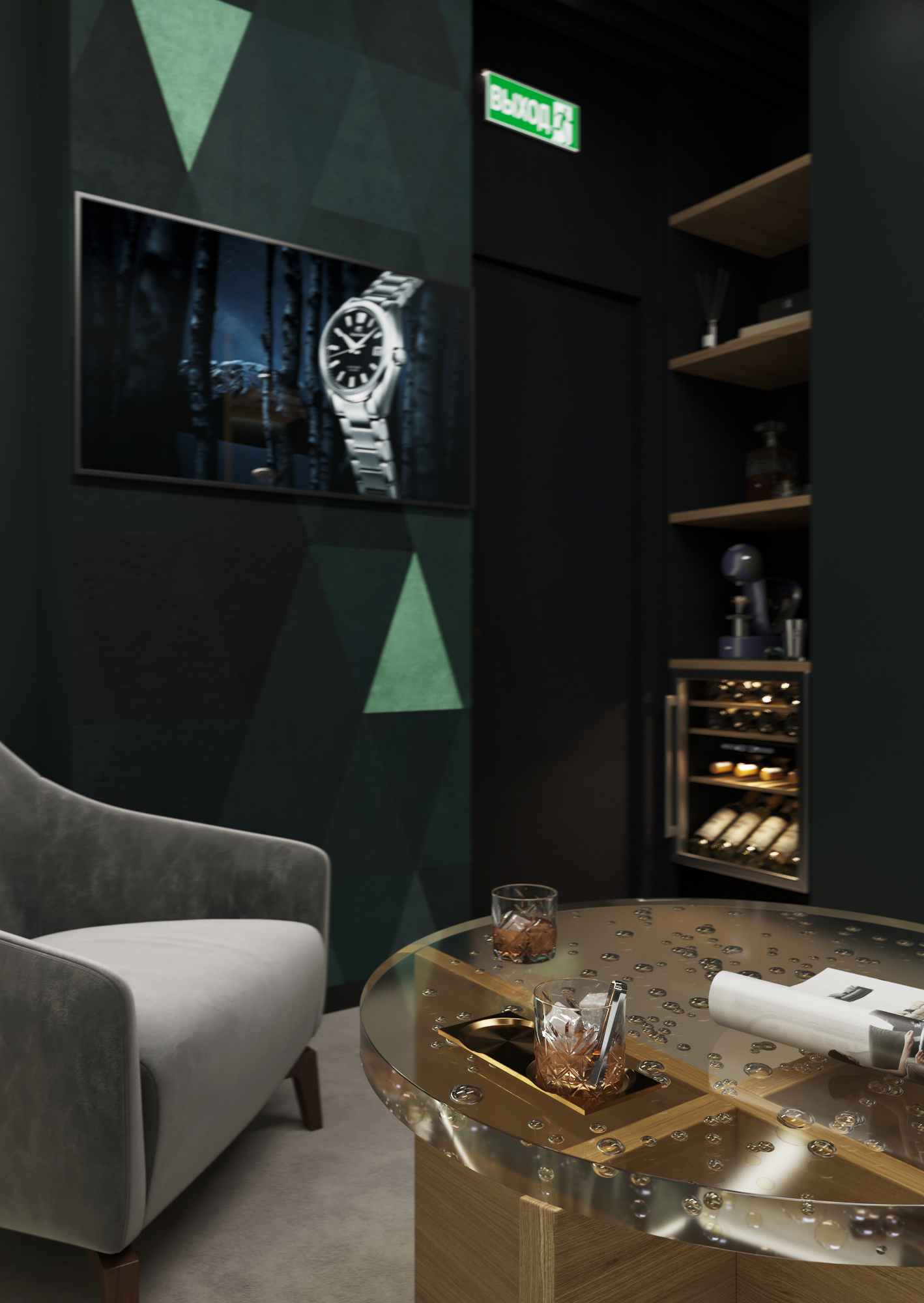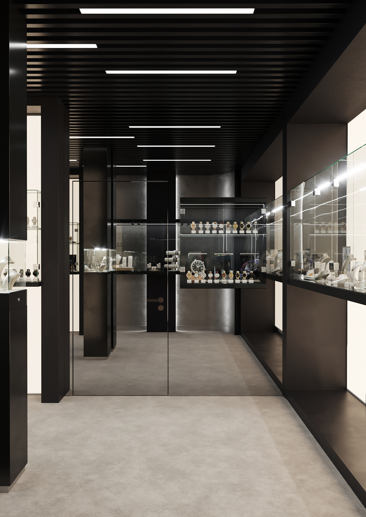 Главная задача при формировании концепции дизайна была разделить одно торговое помещение на три зоны (pre-owned , основная и премиум). Нам удалось сделать это путем концепции loft-underground и хайтек-минимализм. Контраст, созданный путем нескольких материалов, помог достичь желаемого эффекта.