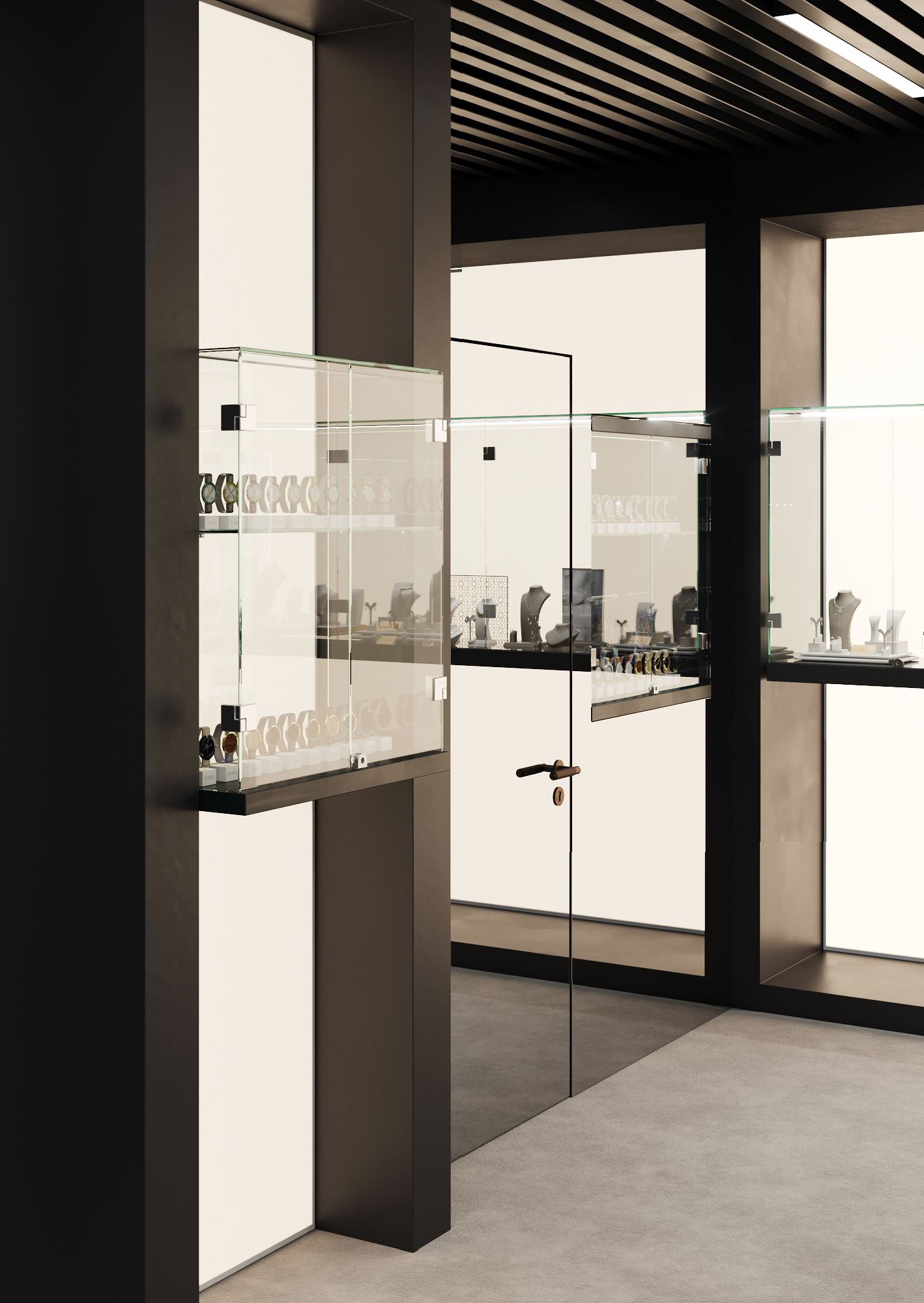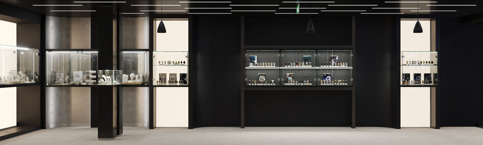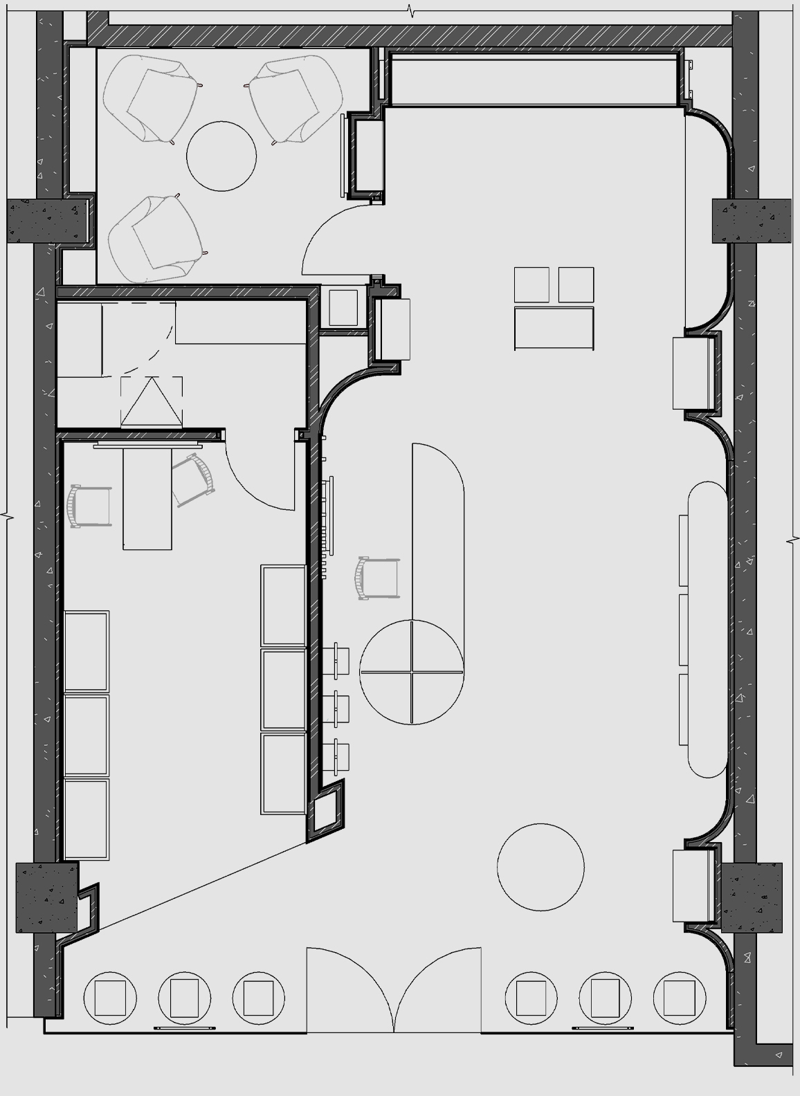 Планировочное решение представляет собой 4 помещения: основной торговый зал, второстепенный торговый зал, VIP-комната, подсобное помещение, разделенные между собой ГКЛ перегородками. Расстановка торгового оборудования выполнена таким образом, чтобы обеспечить нормативный путь эвакуации из помещения торгового зала.